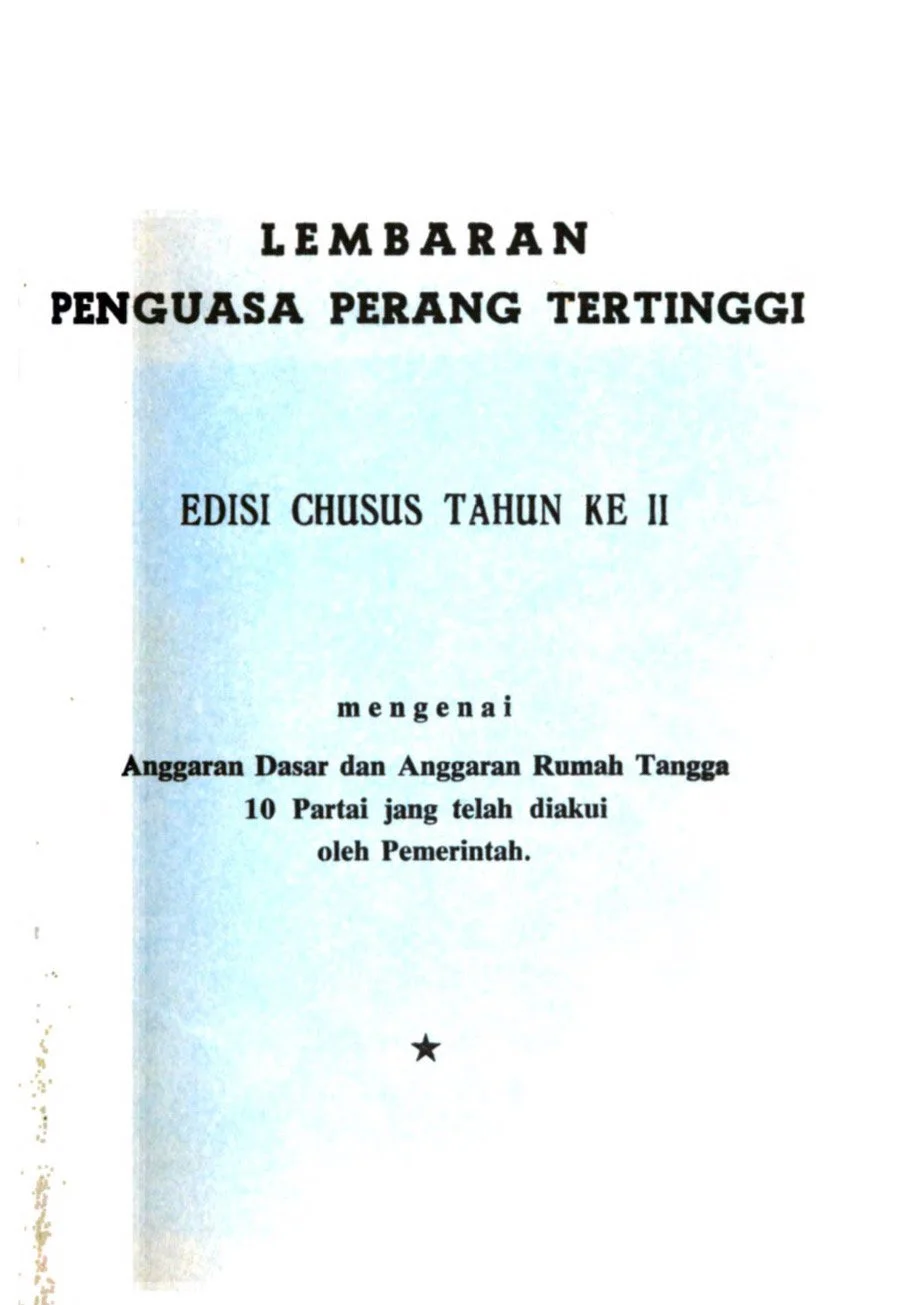 LEMBARAN PENGUASA PERANG TERTINGGI: EDISI CHUSUS TAHUN KE II MENGENAI ANGGARAN DASAR DAN ANGGARAN RUMAH TANGGA 10 PARTAI JANG TELAH DIAKUI PEMERINTAH