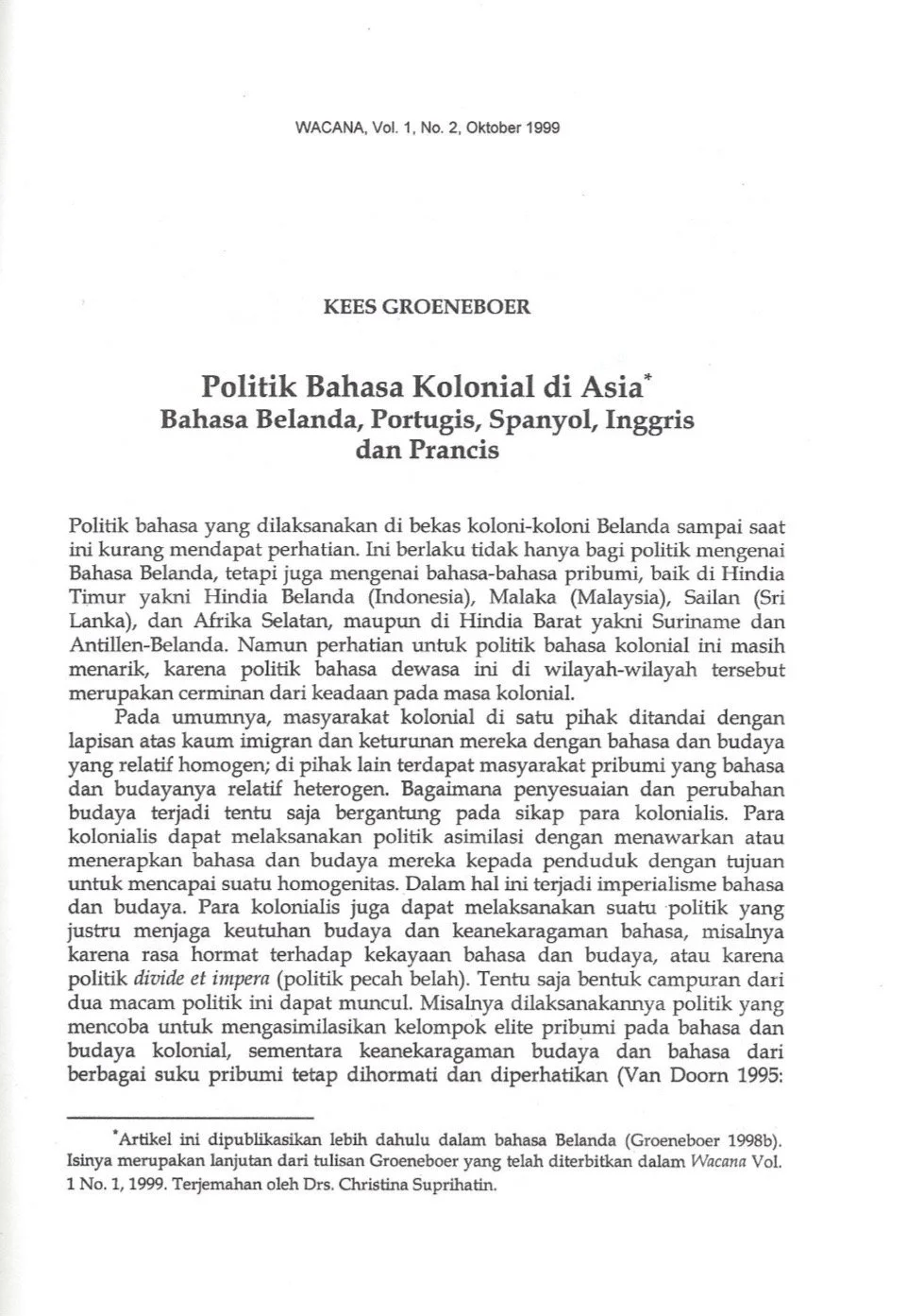 In: Wacana, Journal of the Humanities of Indonesia, Vol. 1 No. 1, 1999, pp. 32-48