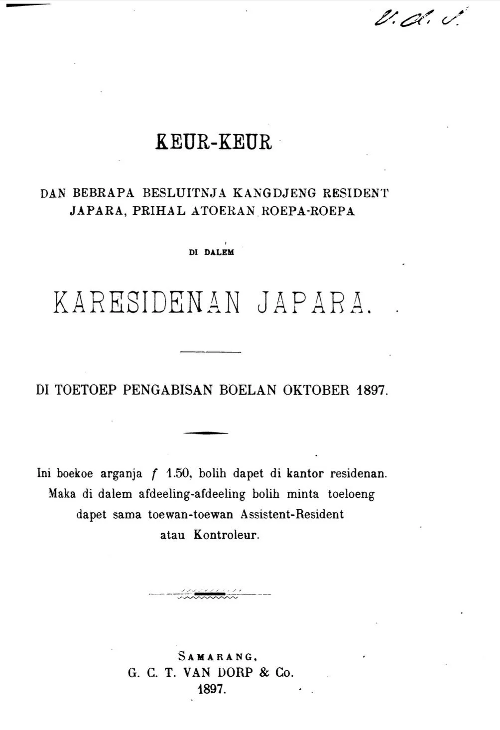 KEUR KEUR DAN BEBRAPA BESLUITNJA KANGDJENG RESIDENT JAPARA, PRIHAL ATOERAN ROEPA-ROEPA DI DALEM KARESIDENAN JAPARA