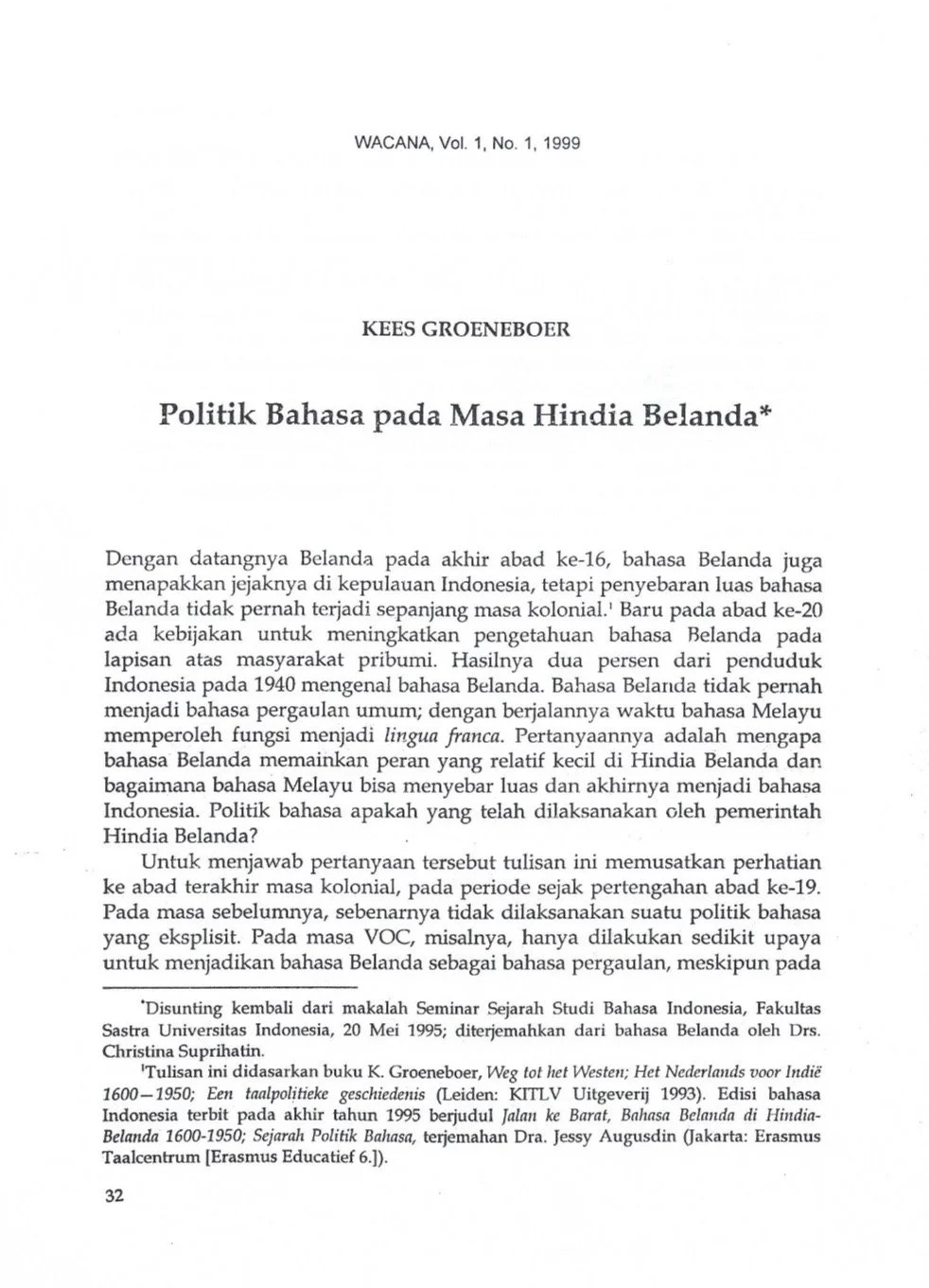 In: Wacana, Journal of the Humanities of Indonesia, Vol. 1 No. 1, 1999, pp. 32-48